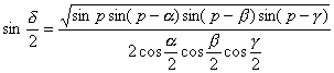设a,b,g为三条边(即三段大圆弧长,以球半径R为度量单位),A,B,C为三个角(即三段大圆弧的两两夹角,图1.7).球面三角形的三个角之和一定大于180°,其差d = A + B + C-p叫球面角超(单位弧度),d >0.