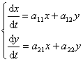 [常系数齐次线性微分方程组平衡点的稳定性问题] 为了简便起见,只研究含两个未知函数的方程组