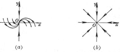 零解是不稳定的.轨道形状如图13.1(b).这种类型的平衡点(0,0)称为不稳定结点.