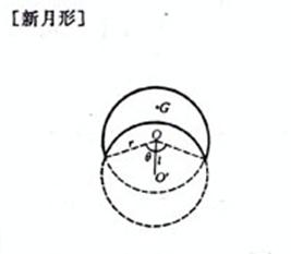 r为半径,d为直径,l为圆心距,,为新月形张开角度,为其弧度数