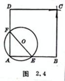 [已知边长作正方形] 已知AB等于边长.以AB外任一点O为圆心,OA为半径画圆交AB于E.连接EO并延长交圆于F,连接AF并延长截取AD=AB.分别以B,D为圆心,AB为半径画弧交于C,连接BC,DC,□ABCD即为所求正方形(图2.4).