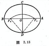 两点钉上钉子,把一长度为2a的线的两端固定在钉子上,再用铅笔拉紧线,移动铅笔所画出的曲线即为椭圆(图2.13).