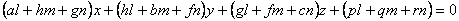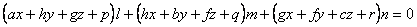 l,m,n变动时,这个方程表示一个平面把,由此二次曲面的直径平面组成一个平面把.把内任一平面都通过下列三个平面的交点: