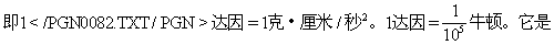 【力的单位】在米·千克·秒制中力的单位是“牛顿”。力的大小,习惯上用重力的单位。若在弹簧秤上挂500克的砝码时的伸长长度与用手拉弹簧秤的伸长长度相同时,手的拉力便与500克砝码的重力大小相同。因此,与500克的重量同样作用的力,就用500克的力来表示。但实际上,克、千克都是质量的单位,克重或千克重等重量单位是属于力的一种重力单位,不能代表全部,而且在计算上数值不同,故有力之绝对单位。依牛顿力学的定义:力=质量×加速度。质量为1千克的质点,在力的方向产生1米/秒2的加速度时,则称该力为1千克·米/秒2=1牛顿。因质点受地球引力作用,下落时的重力加速度为g=9.8米/秒2,故质量为1千克的质点的重力G=mg=1×9.8千克·米/秒2=9.8牛顿。