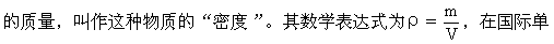 【密度】某种物质的质量和其体积的比值,即单位体积的某种物质