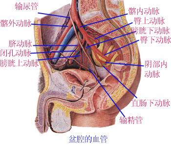 髂总动脉在骶髂关节前方分为髂外、髂内动脉。 Iliac artery in front of the sacroiliac joint into the external iliac, internal iliac artery. 髂内动脉主要分支供应盆部。 The main branch of the internal iliac artery supplies pelvic.