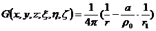 2 ° For a sphere (the center of the sphere is O and the radius is a ), the basic solution for u = 0 is , r is the distance between P ( x , y, z ) and the parameter point M ( , , ) , and M is about the sphere. Invert the point M 1 , record r 1 as the distance between M 1 and P , then the Green's function is ![]()