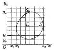 在平面 (x,y)上的一以S为边界的有界区域D上考虑定解问题.为了用差分法求解,分别作平行于x轴和y轴的直线族.