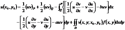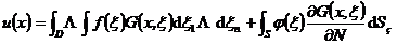 1 ° General formula Applying Green's formula (this section, 4) on the region D , and taking v=G ( x , ) , the solution of the Dirichlet problem u | s = of the equation Lu=f is ![]()