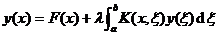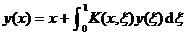 Solving for    1° In this special case, the integral equation can be reduced to a differential   equation with endpoint conditions y (0)=0, y (1)=1