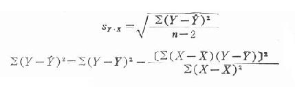 式中sy.x为各观察值Y距回归直线(Y)的标准差,是当X的影响被扣除后Y方面的变异指标。可用以下公式计算: